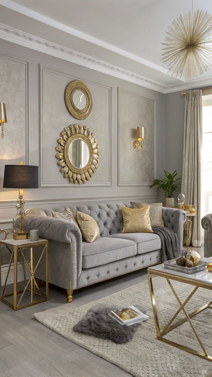 Use mushroom gray as your base color and incorporate golden yellow through lighting fixtures, throw blankets, or small decorative pieces for a sophisticated warmth.
