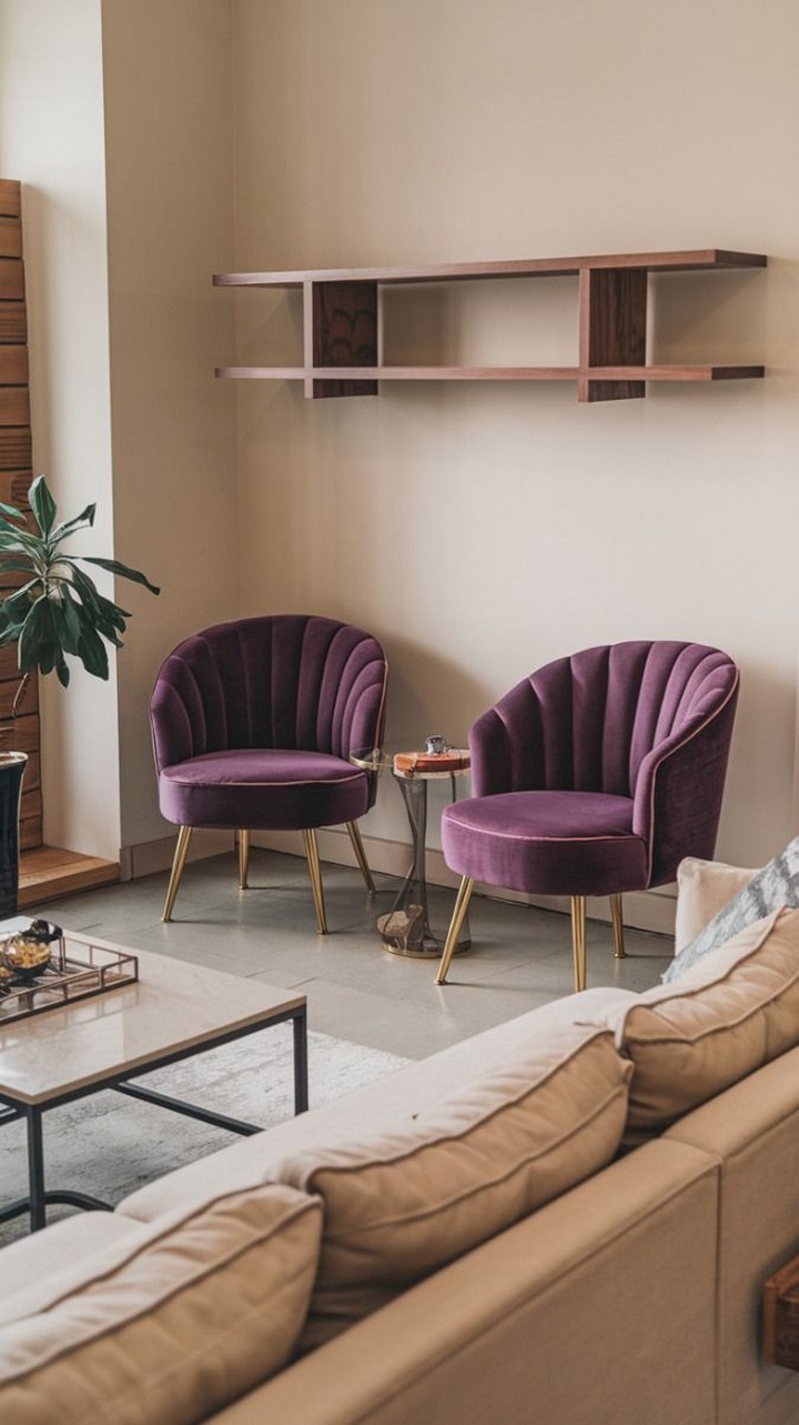 Add swivel chairs in luxurious fabrics like bouclé or velvet. The movement functionality adds practicality while the textures contribute to the cozy factor.