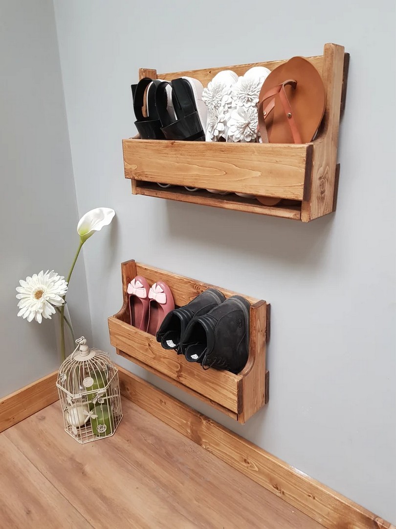 If there’s enough room above eye level (or even below), floating shelves are a great way to organize footwear without sacrificing style points – just don’t forget about safety when mounting them onto walls! You could also use this method vertically by installing multiple tiers of shelves along one wall which would give more height clearance than if they were placed horizontally across several walls at once – perfect for storing those tall boots!