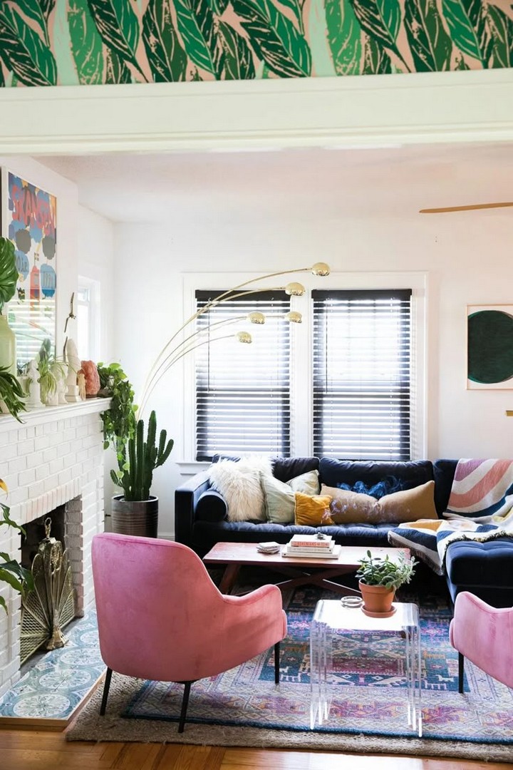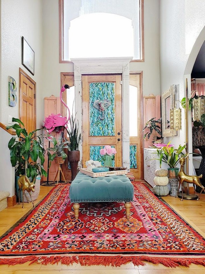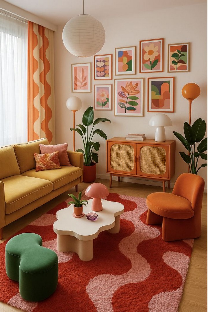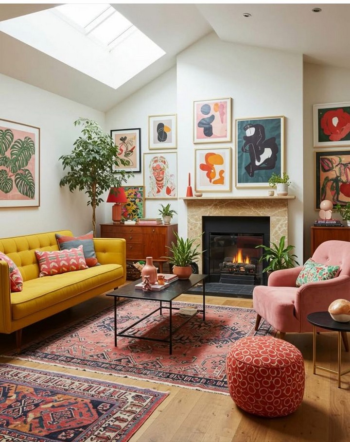 Embrace bold patterns and vibrant colors by layering different textiles, mixing geometric rugs with floral cushions, and incorporating statement lighting fixtures that serve as functional art pieces.