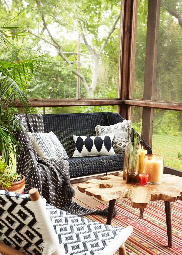 Create an outdoor living space that feels like an extension of your home by mixing weather-resistant furniture with colorful textiles and plants.
