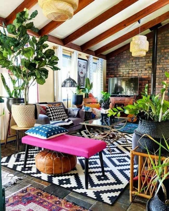 Blend raw industrial elements like exposed brick walls and metal fixtures with soft bohemian textiles, macramé wall hangings, and lush plants for a perfectly balanced contrast.