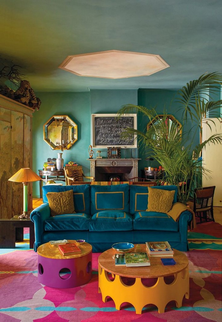 Create depth and luxury by incorporating rich jewel tones through furniture, textiles, and accessories from different design periods.