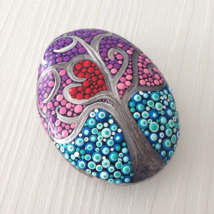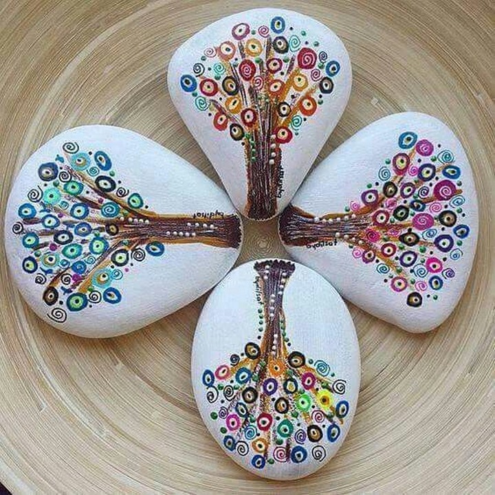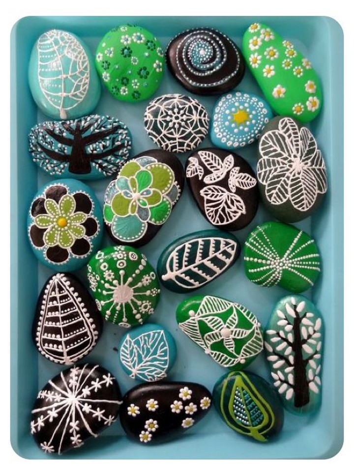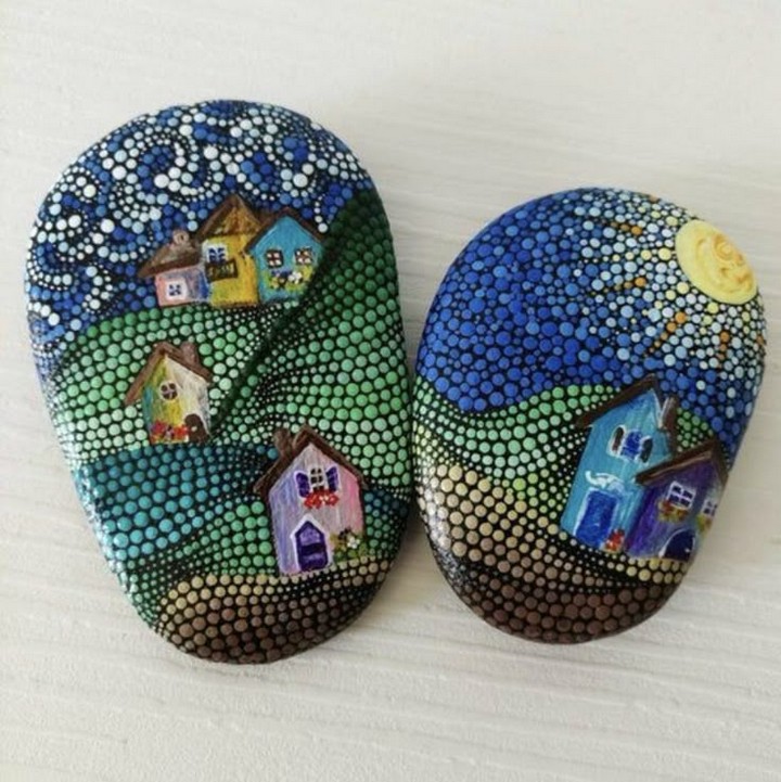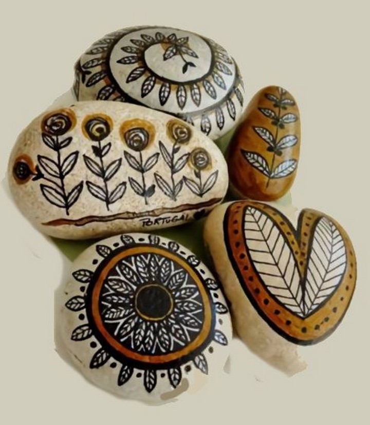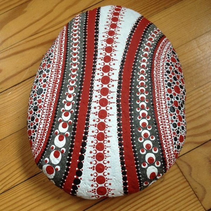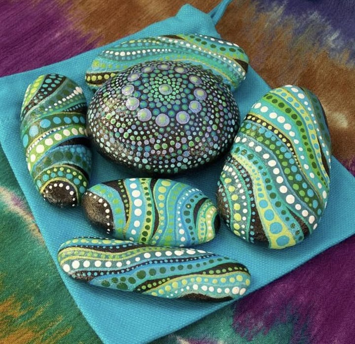 Design complementary patterns across multiple rocks that form a complete mandala when placed together. Plan the overall design carefully, ensuring each rock works independently while contributing to the larger composition. Perfect for creating large-scale installations or interactive puzzle-like art pieces.
