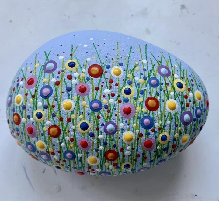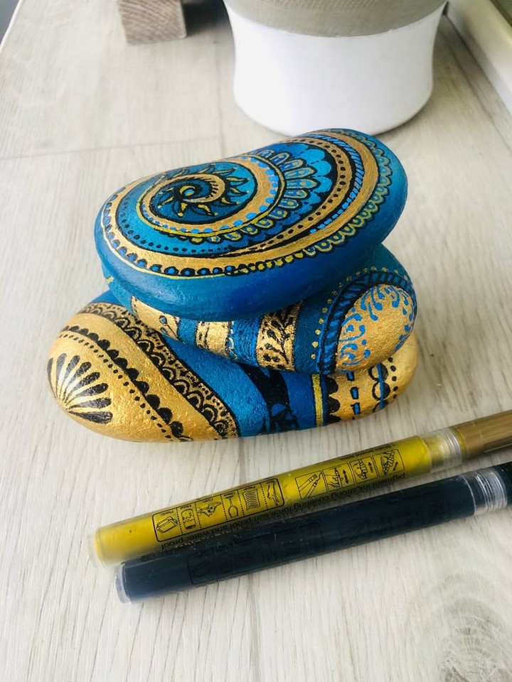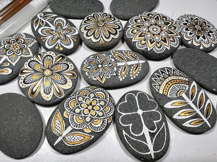 The therapeutic benefits of creating mandala art on rocks include stress reduction, improved concentration, and enhanced creativity. The repetitive nature of dot painting and pattern creation activates the same neural pathways associated with meditation, providing both artistic satisfaction and mental wellness benefits.