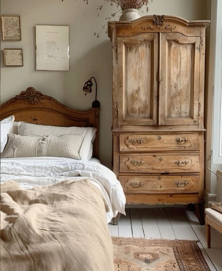 Use a vintage armoire for clothing storage when closet space is limited. These substantial pieces provide ample storage while adding architectural interest and old-world charm.