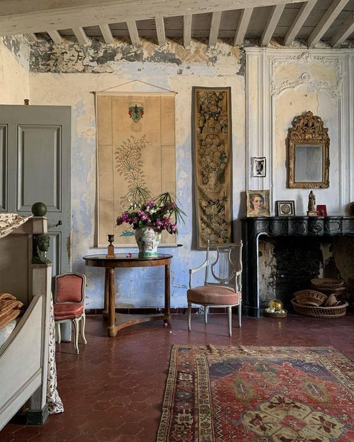 Layer beds with authentic vintage quilts, embroidered linens, and lace-trimmed pillowcases. These textiles add comfort, color, and handcrafted beauty that celebrates traditional needlework.