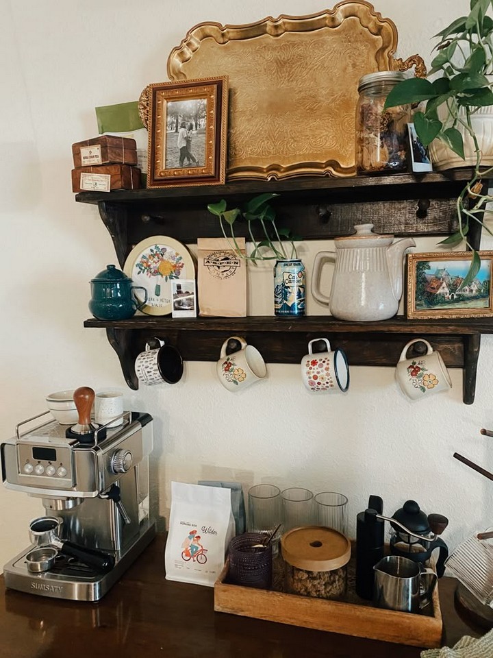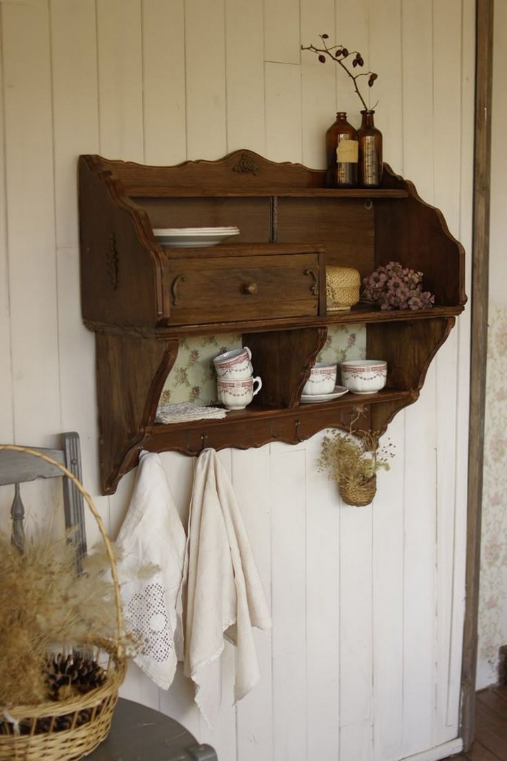 Replace upper cabinets with open wooden shelves to display vintage dishware, glassware, and collectibles. This approach creates visual lightness while showcasing beautiful functional items.