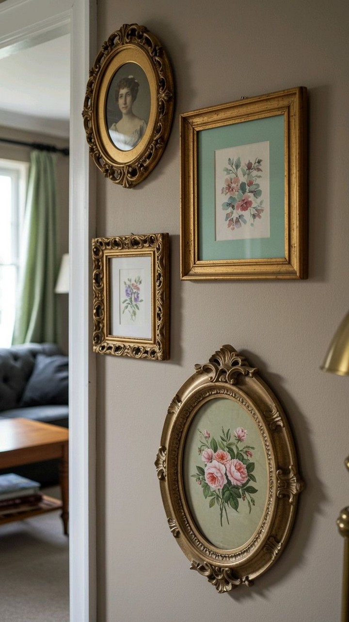 Select a vintage mirror with ornate frame and original silvering. These pieces provide practical functionality while adding light reflection and decorative interest to entry spaces.