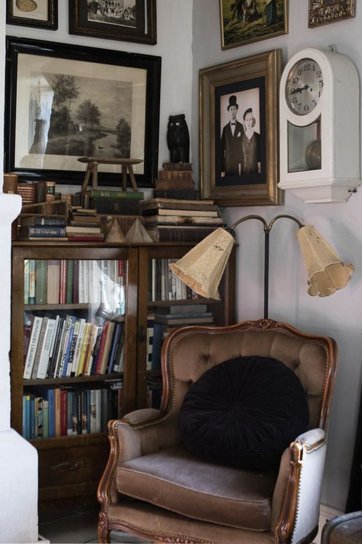 Display vintage books, collectibles, and curiosities on weathered wooden bookshelves. Mix items by color, size, and texture to create vignettes that tell personal stories and reflect individual interests.