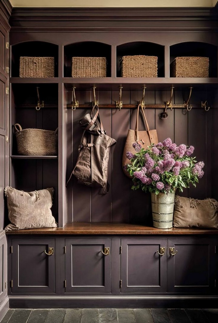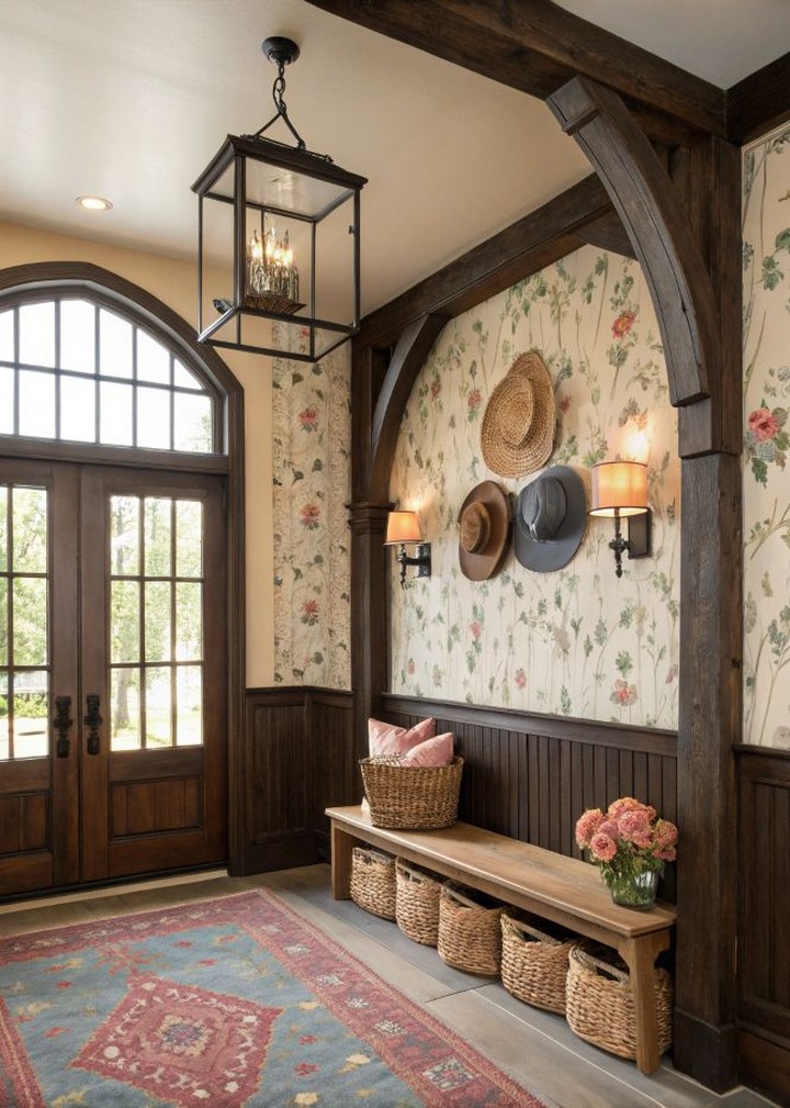 Install a vintage hall tree for coat and hat storage. These pieces provide practical functionality while adding welcoming character that sets the tone for home atmosphere.