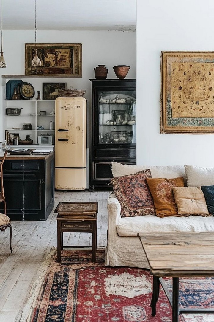 Layer authentic Persian or Oriental rugs to create rich, textured flooring that adds warmth and color. These handcrafted treasures provide artistic foundation elements that complement various vintage furniture styles.