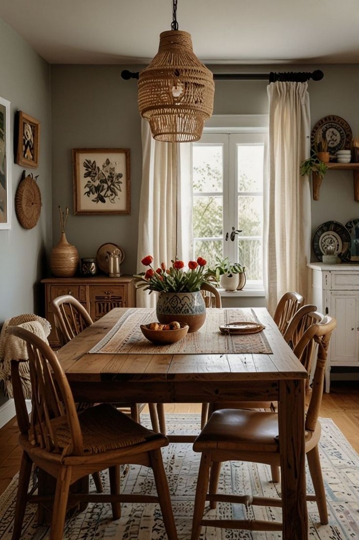 Mix and match vintage dining chairs in complementary styles and finishes. This approach creates visual interest while providing comfortable seating that celebrates diverse design periods.
