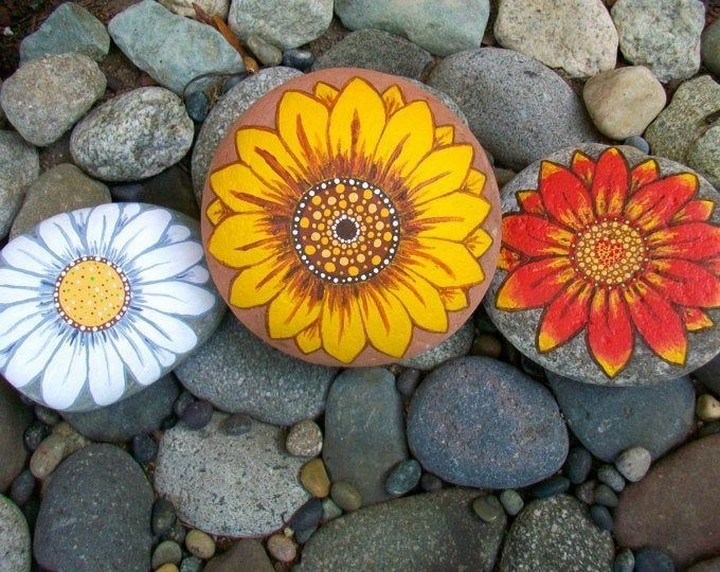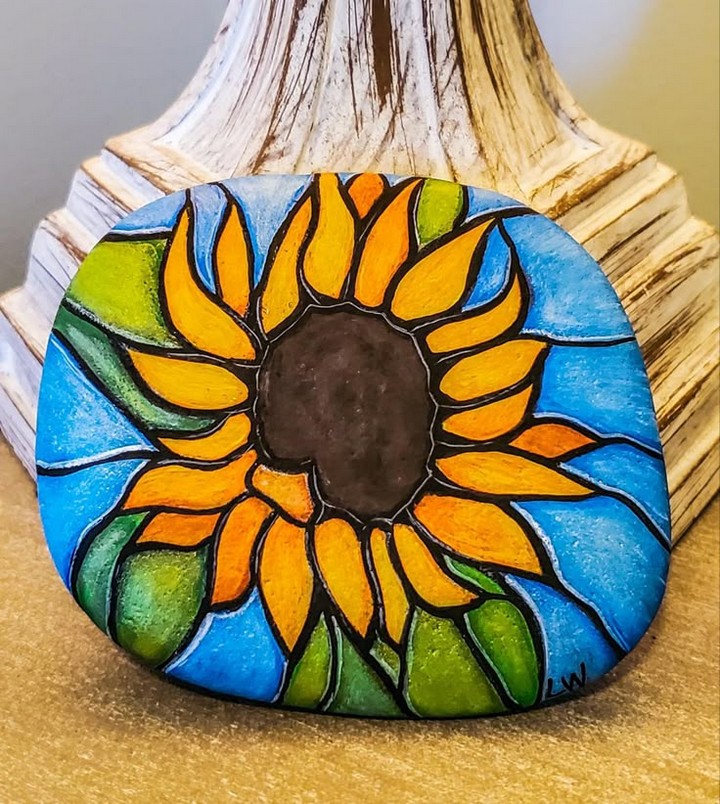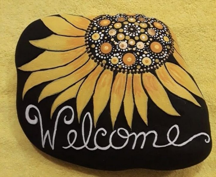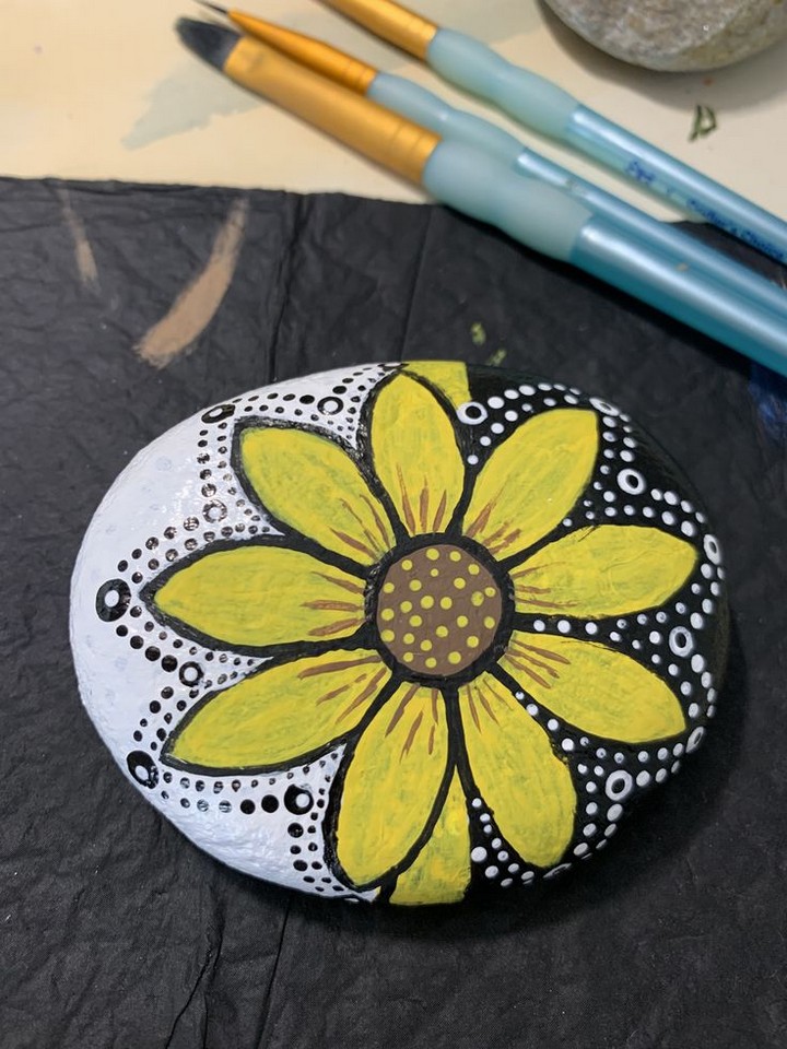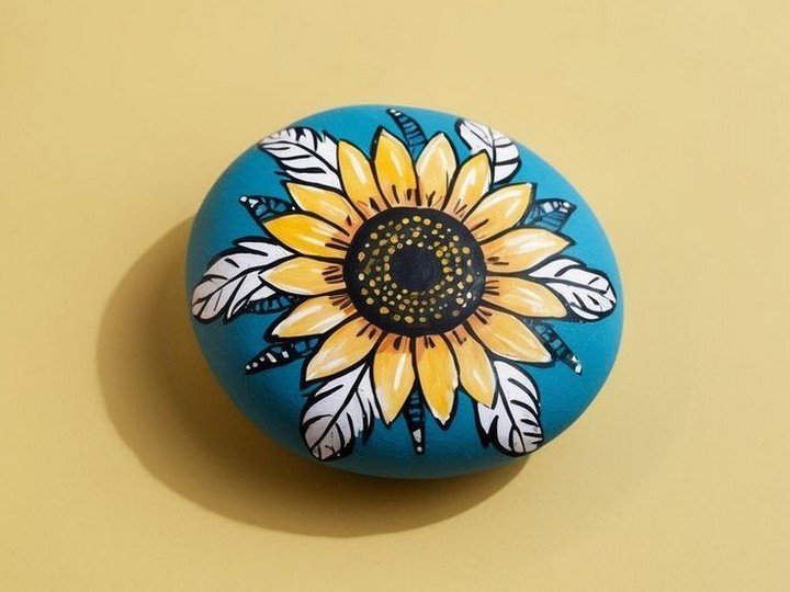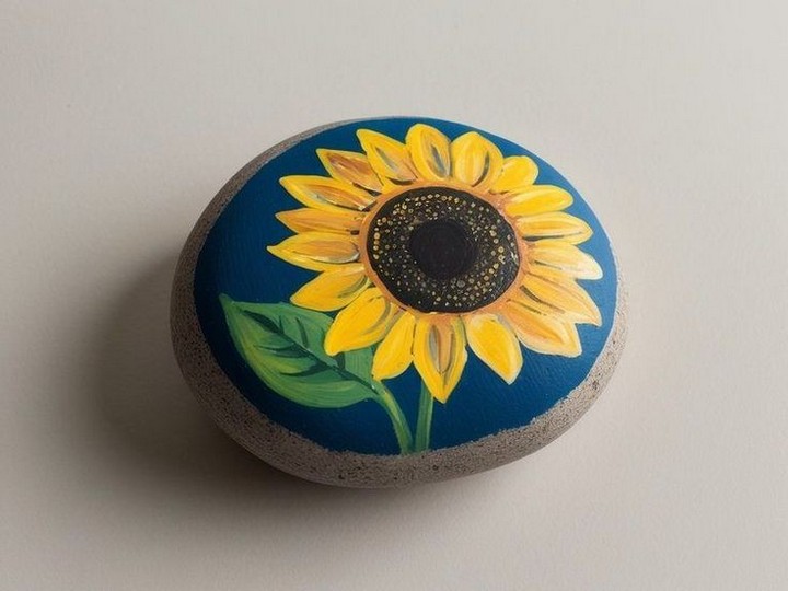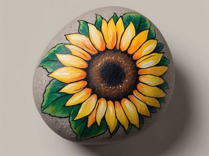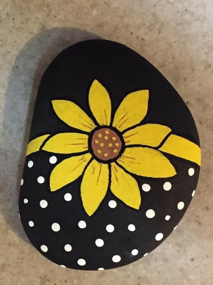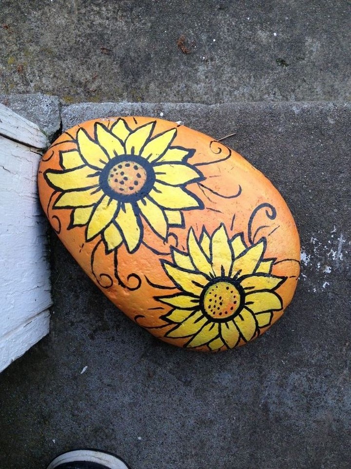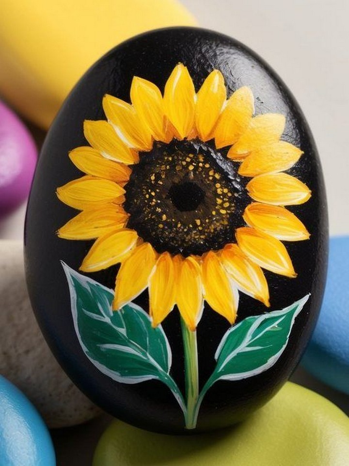 Paint the rock black with chalkboard paint, then draw a sunflower with chalk for a reusable design.