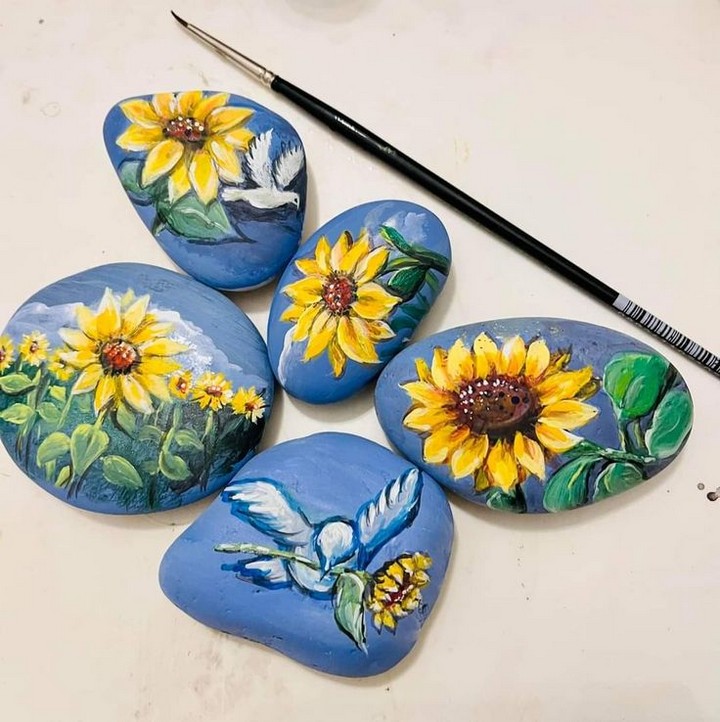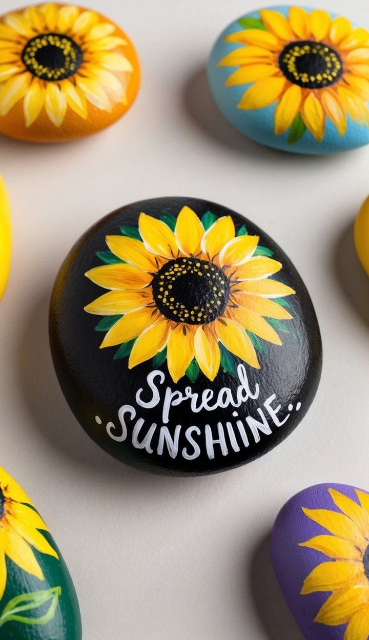 Seasonal and Themed Sunflower Painted Rock Ideas