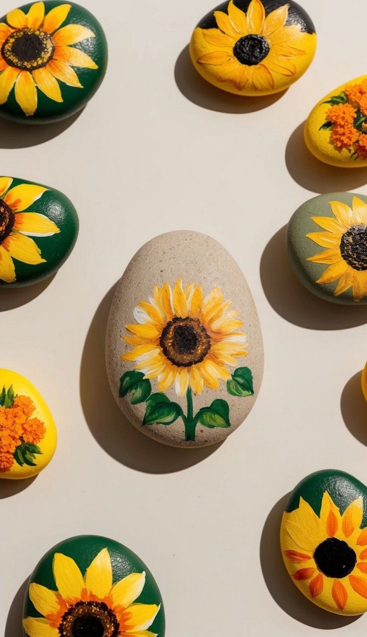 Have you tried painting sunflower rocks before, or do you have a favorite design from this list? Share your creations or ideas in the comments below! Don’t forget to pin this article for inspiration and share it with your crafty friends. Happy painting! 🌻🎨✨