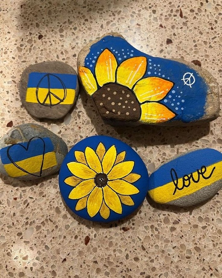 Find a heart-shaped rock and paint a sunflower that fills the entire surface, with petals extending to the edges for a romantic vibe.