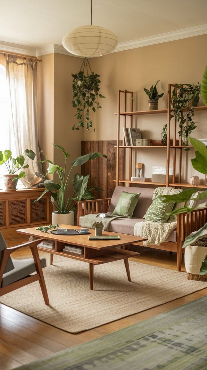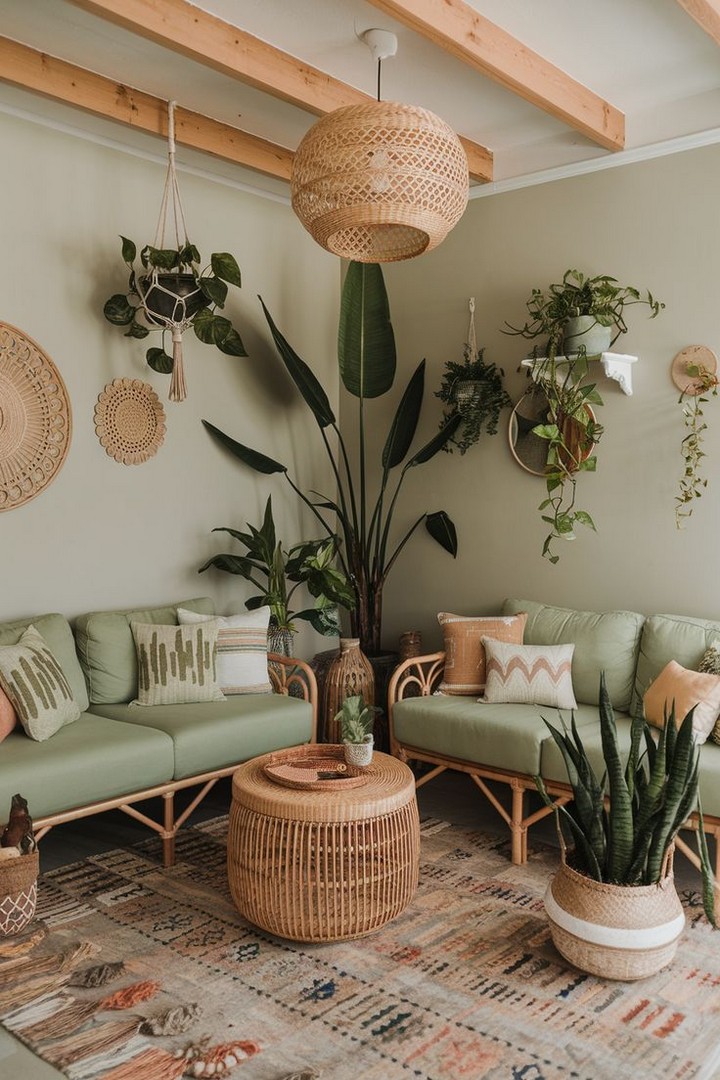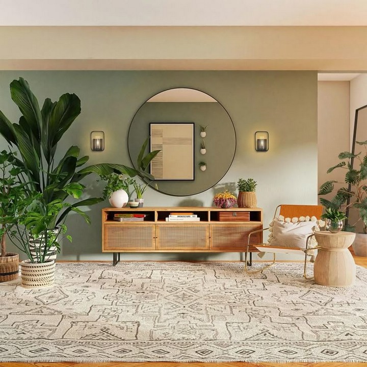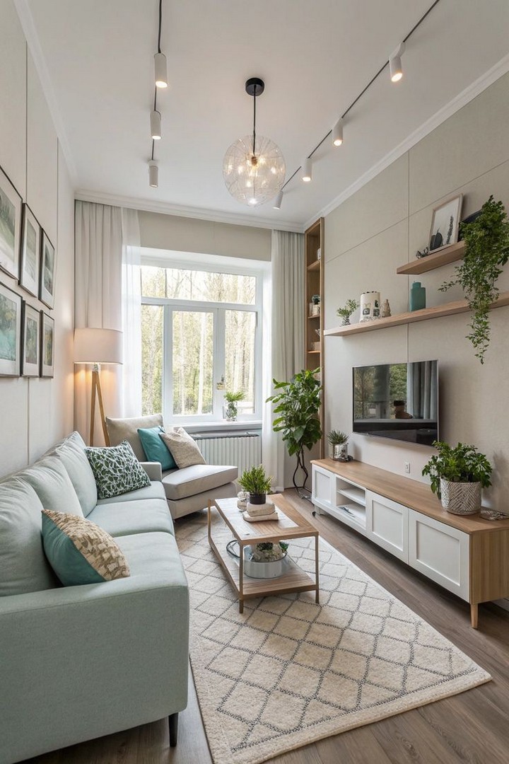 Soft greens provide a natural and calming atmosphere. They make your small apartment feel more alive, fresh, and grounded, especially when paired with natural elements like wood or plants.