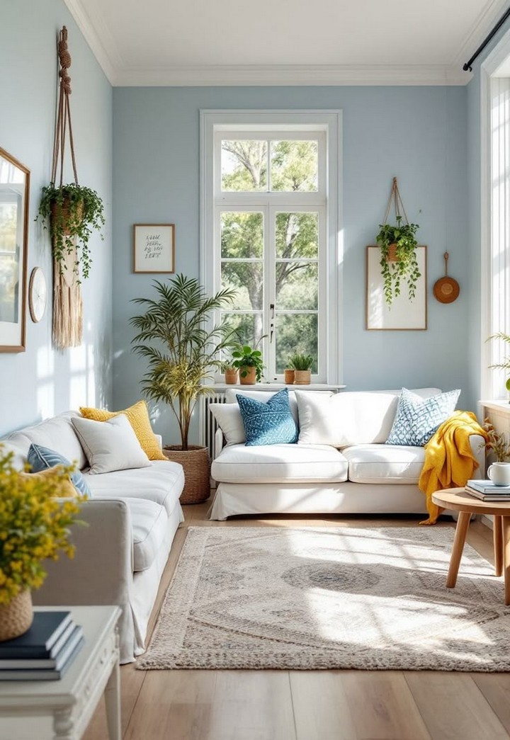 - Pale Sky Blue: A light, fresh blue creates a breezy and open atmosphere, ideal for small living spaces.