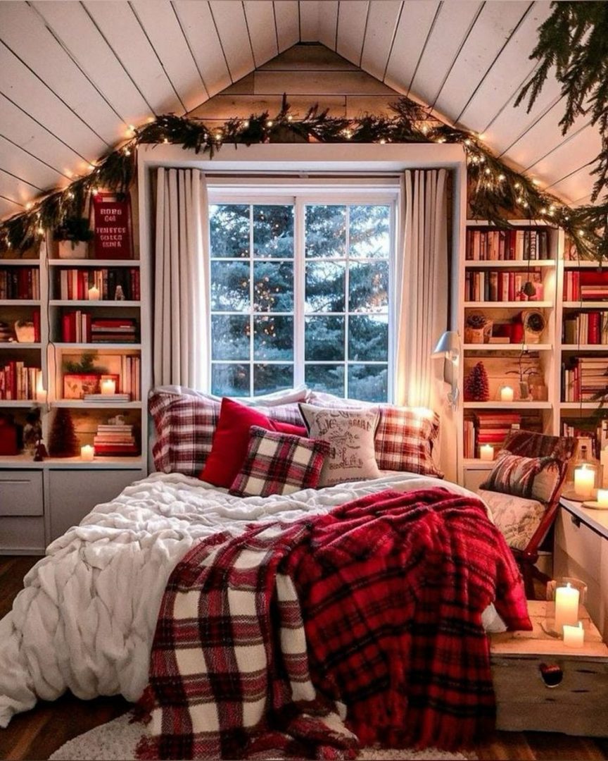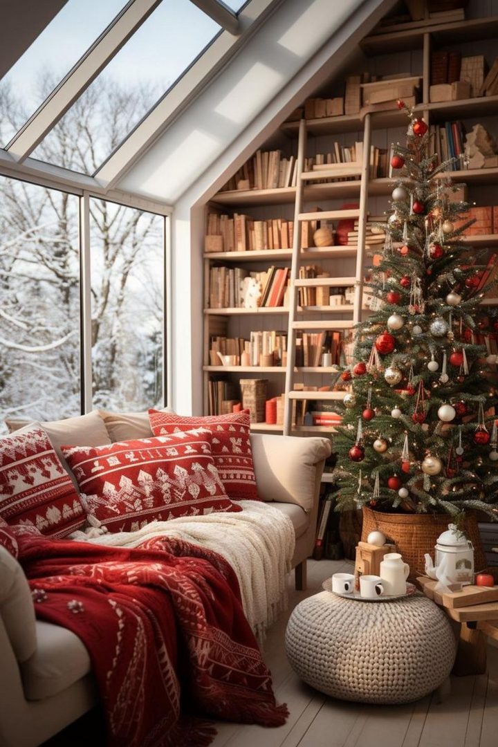 You can also incorporate holiday-themed textiles like plaid or tartan patterns to give your space a traditional, classic look.