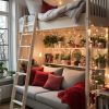 For an extra cozy touch, use warm-toned lights that emit a softer, more flattering glow. You can also use fairy lights or icicle lights to create a magical effect.