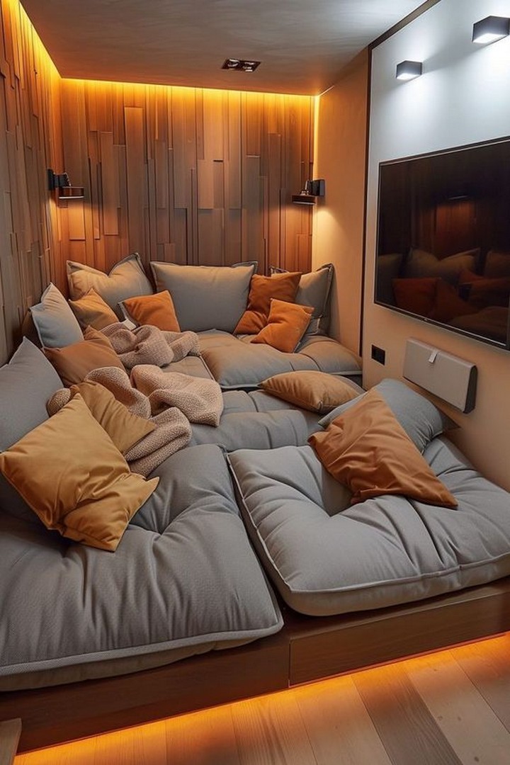 Create a luxurious media room with a large flat-screen TV, surround sound system, and comfortable reclining seats. Incorporate blackout curtains and a popcorn machine for a true cinematic experience at home.