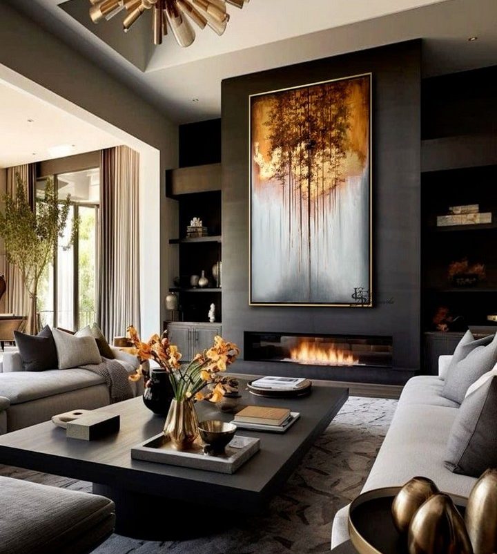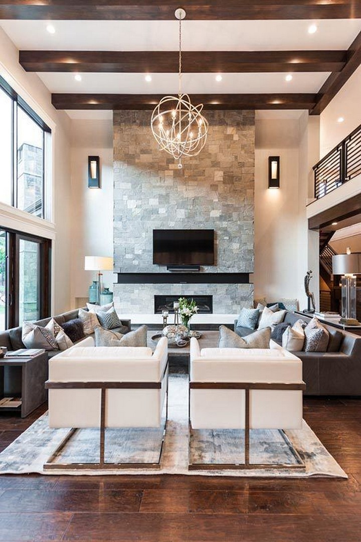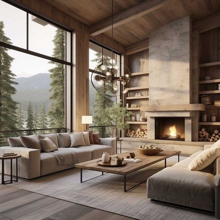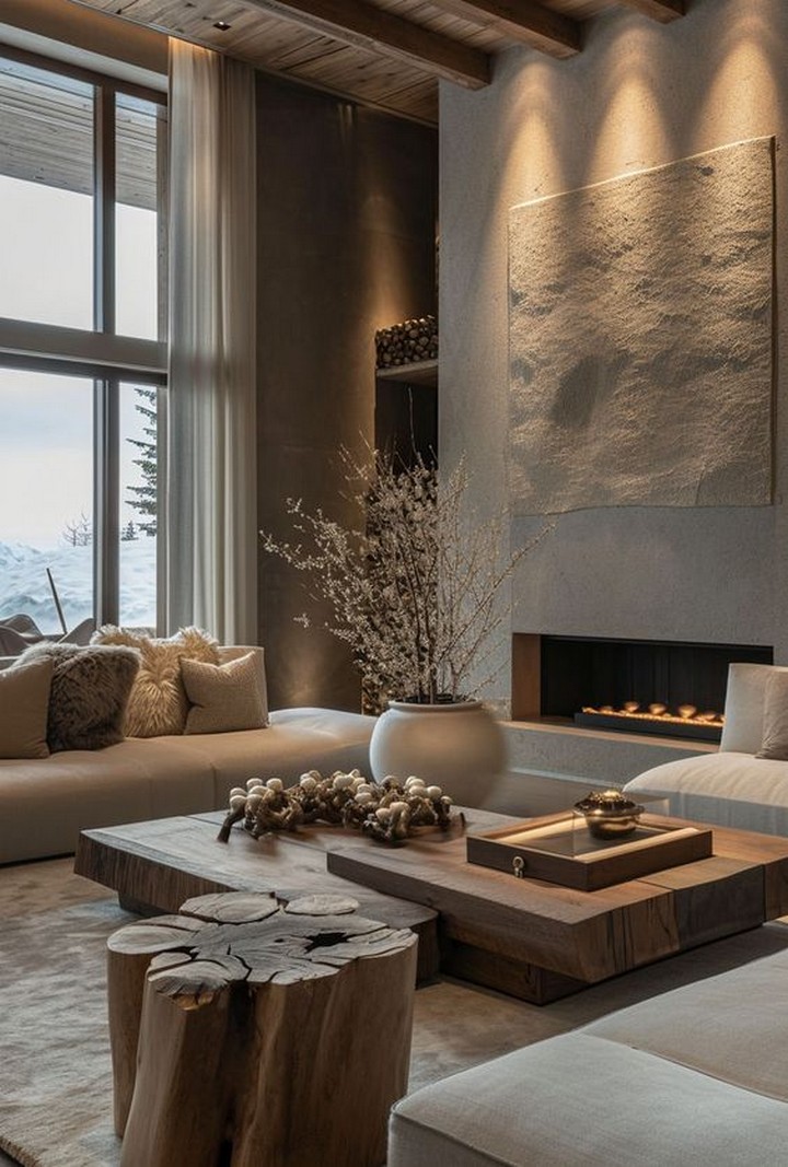 Combine rustic charm with luxurious finishes in your living room. Use reclaimed wood, stone accents, and plush textiles to create a cozy yet sophisticated space that blends warmth and elegance.