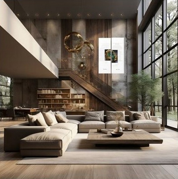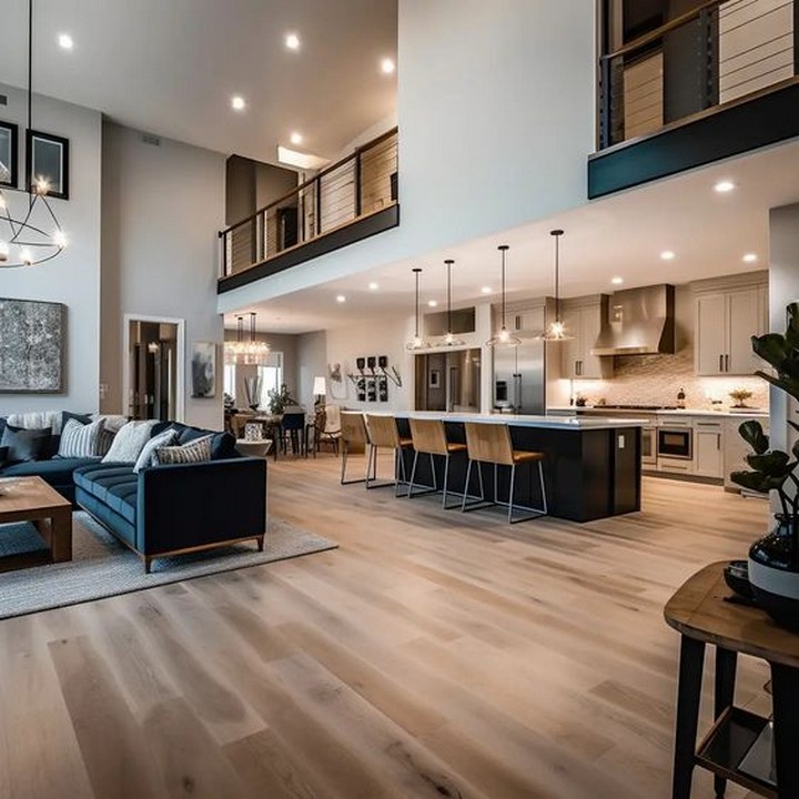 Embrace the modern trend of open-concept living. Use large, flowing spaces that integrate the kitchen, dining, and living areas seamlessly. Use architectural elements like exposed beams or glass partitions to define different zones while maintaining an open feel.
