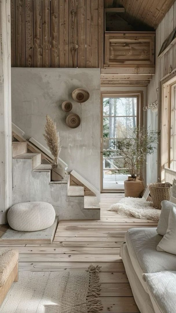 Use light wood finishes for flooring, walls, and furniture. Woods like pine and birch are popular in Scandinavian design for their natural, warm tones that brighten the interior and keep the space feeling airy.