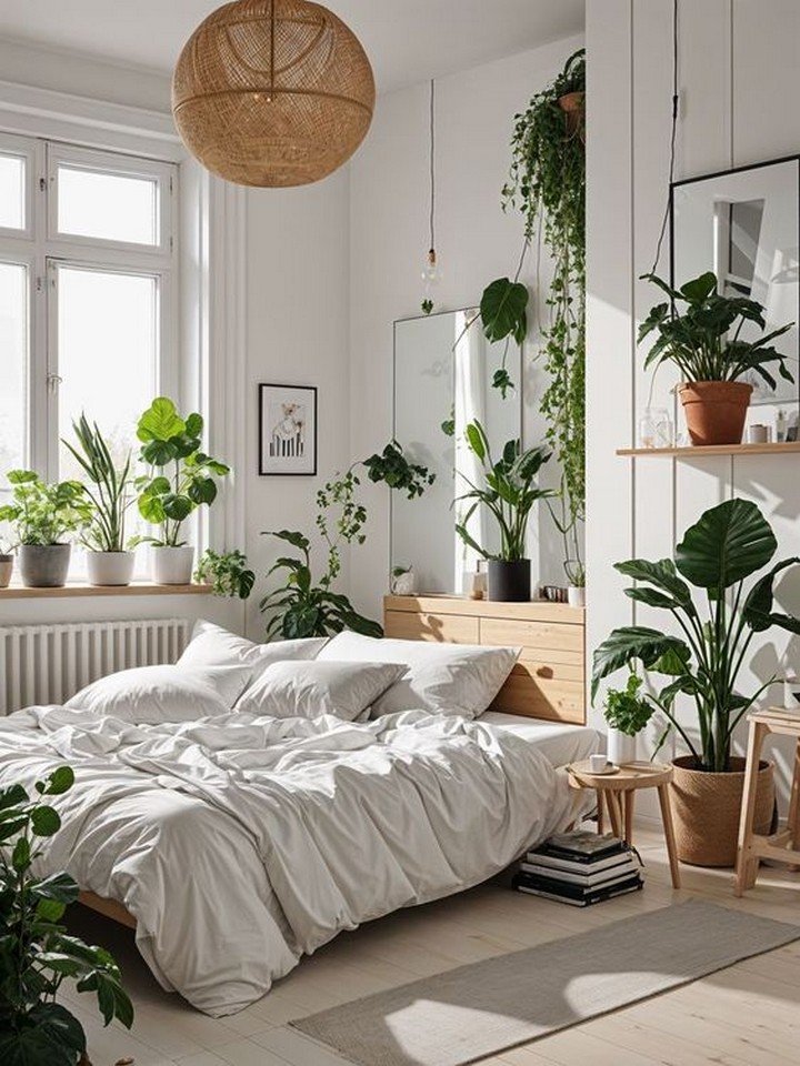 Add a touch of personality with minimalist art. Black-and-white prints, abstract pieces, or simple nature-inspired artworks complement the Scandinavian aesthetic without overpowering the space.