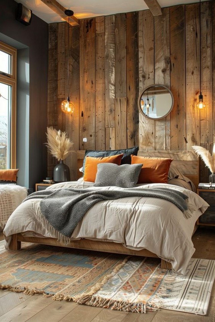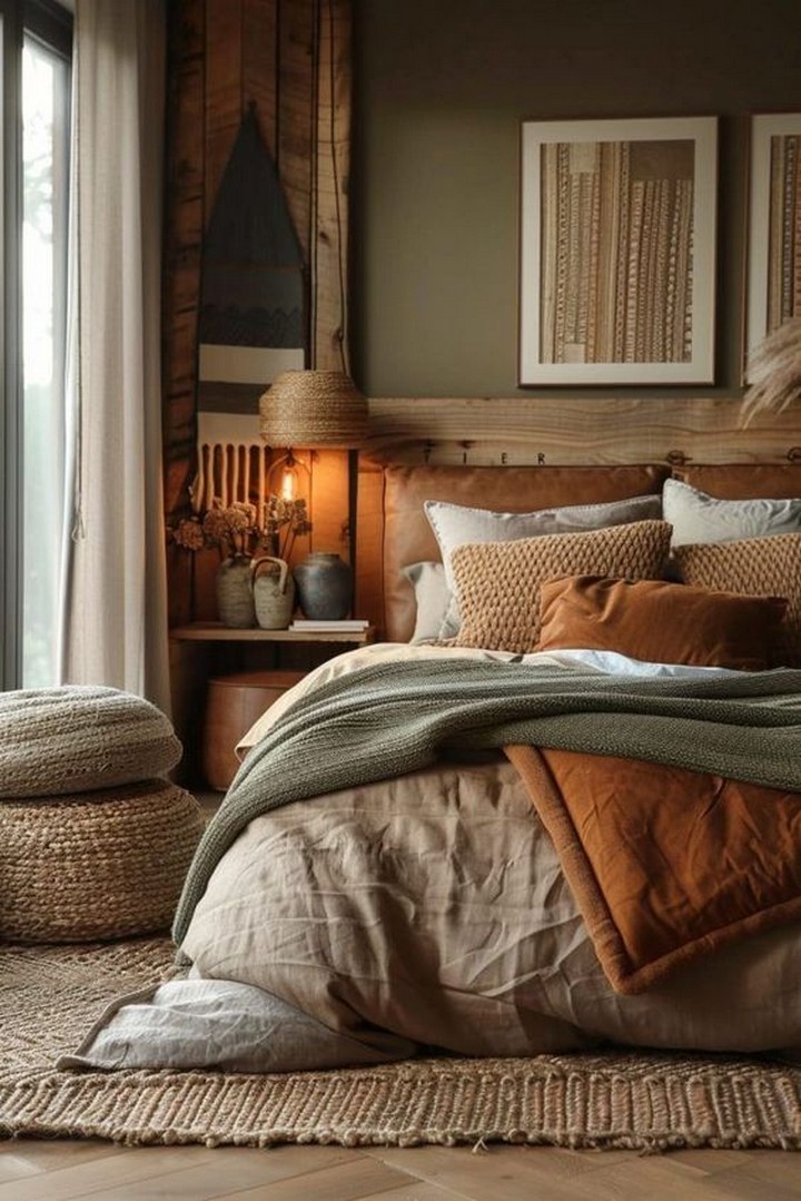 Create a layered bedding look with crisp white sheets, a soft duvet, and decorative pillows. Add a chunky knit throw or a sheepskin rug for extra warmth and texture.
