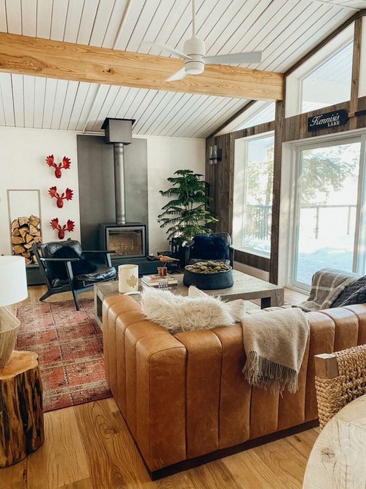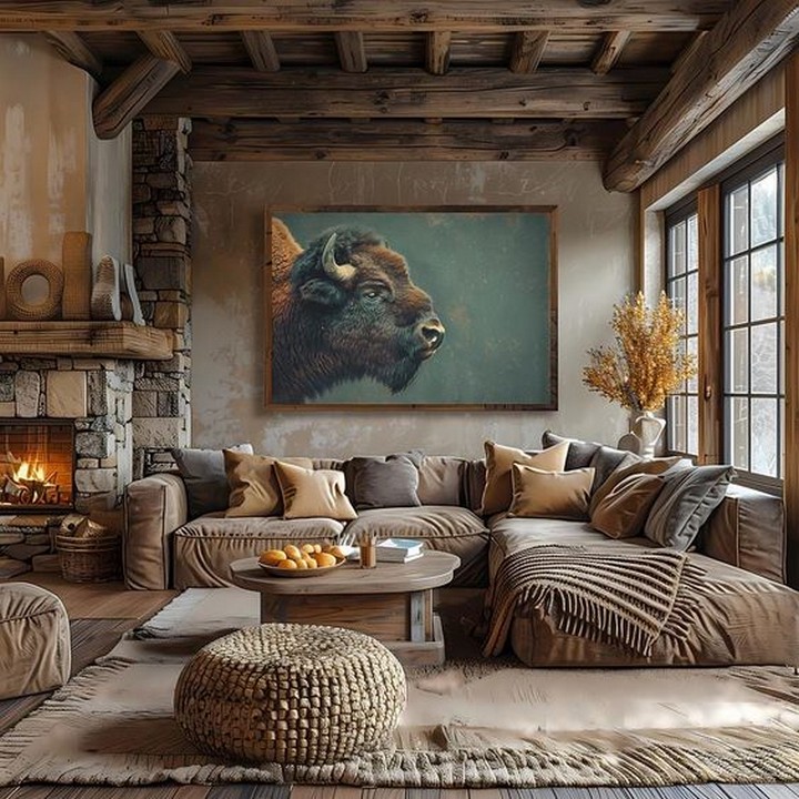 Incorporate cozy textiles like chunky knit throws, sheepskin rugs, and woolen blankets. These elements add warmth and comfort, making your cabin feel inviting and snug, especially during the colder months.