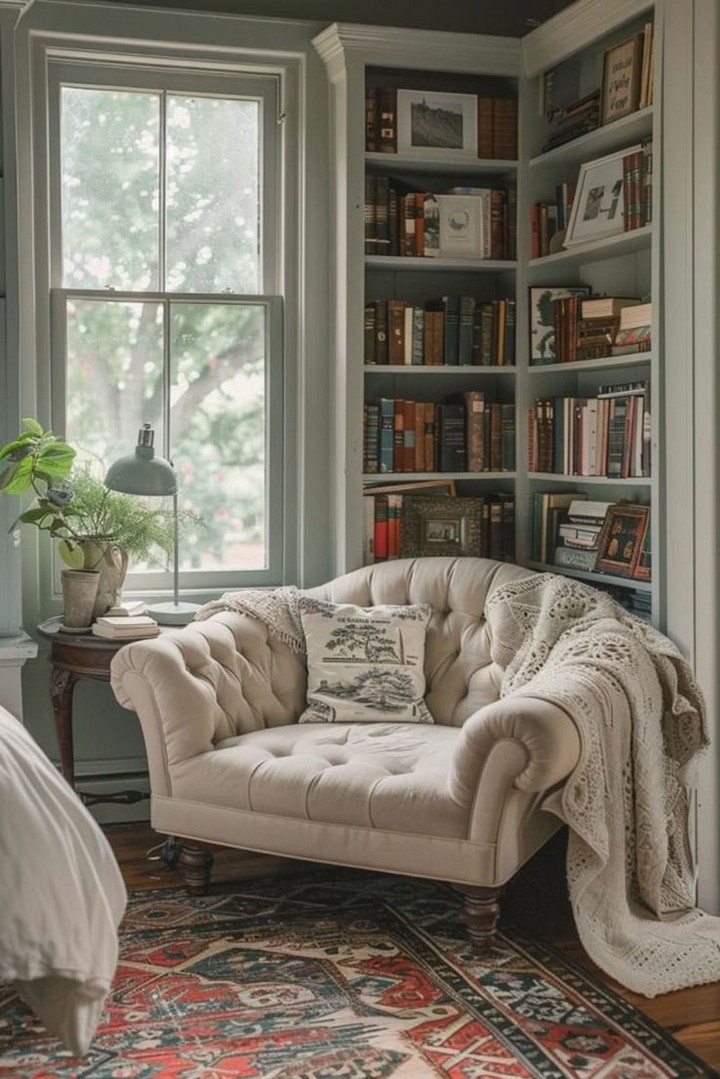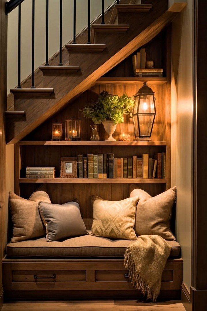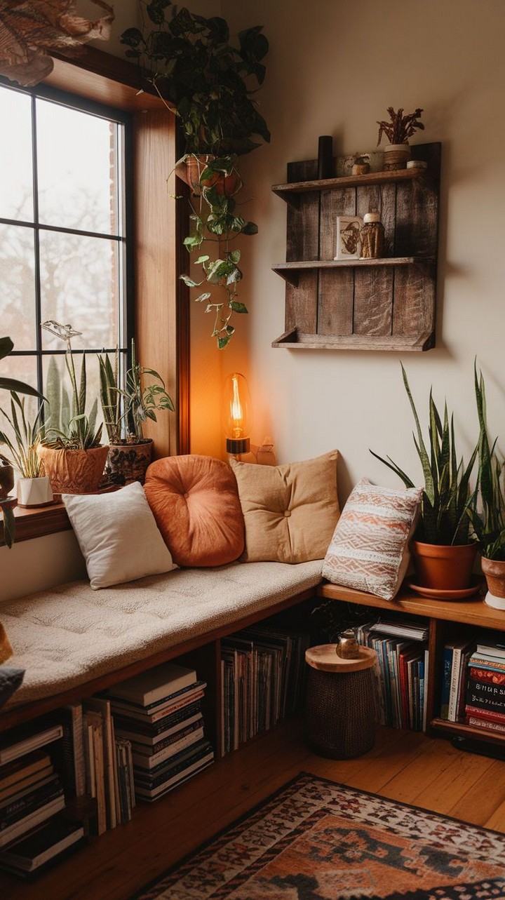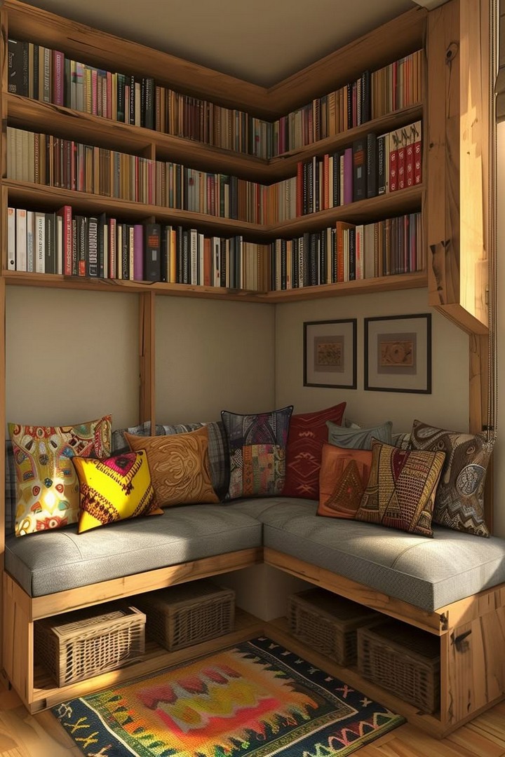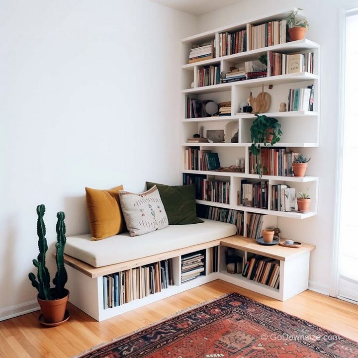 Transform a corner into a book nook with built-in shelves and a comfortable seat.