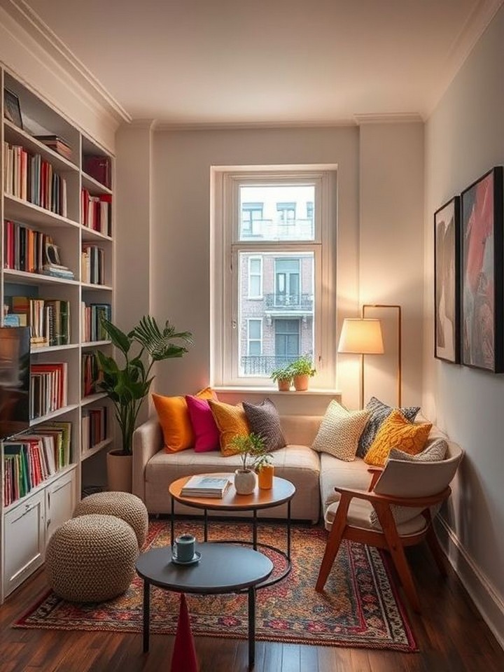Stackable book towers fit perfectly into small corners, making them ideal for apartments or tiny homes.