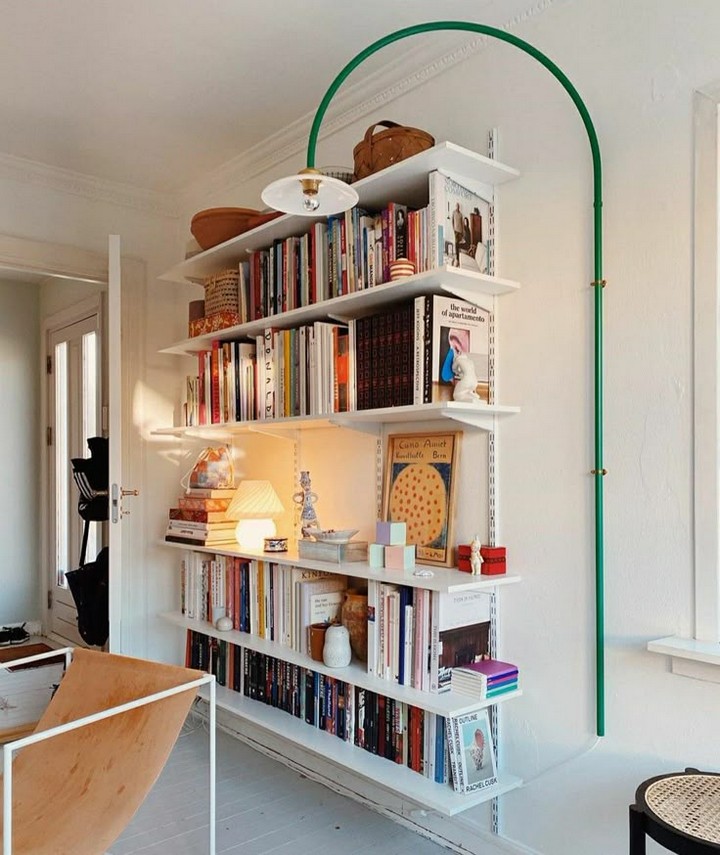 Semi-circular shelves in a corner add a touch of elegance and uniqueness to your storage solution.