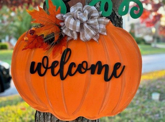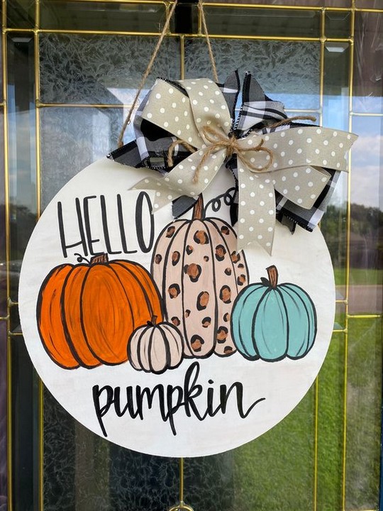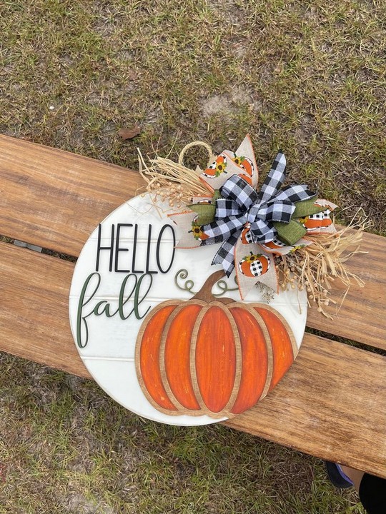 Creating a pumpkin door hanger is a charming and festive way to decorate your front door for fall. Here’s how you can make one: