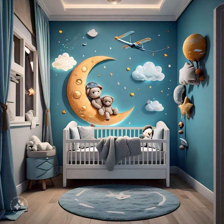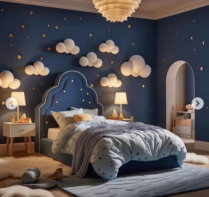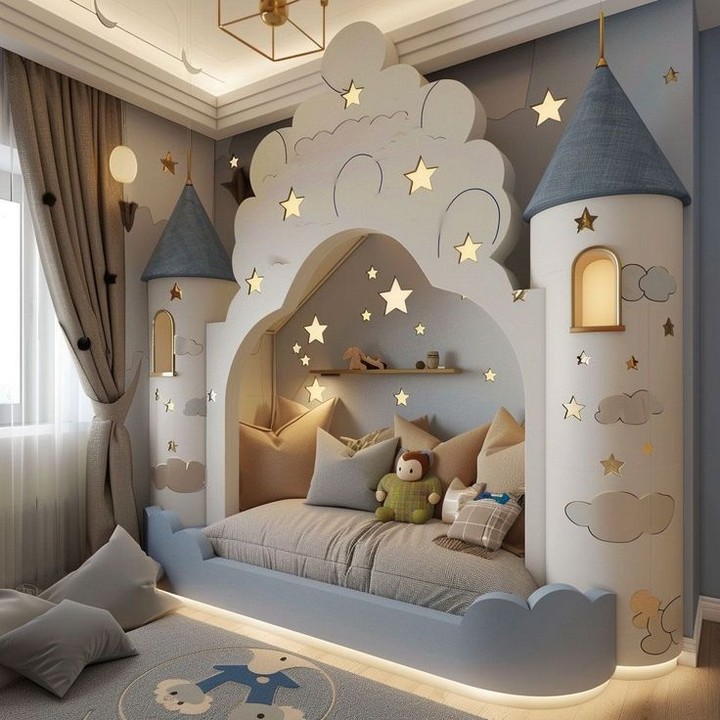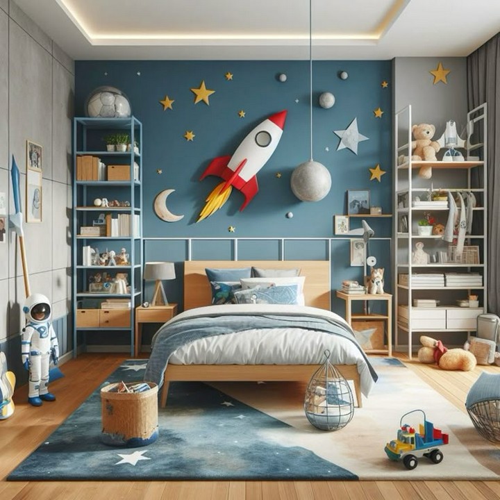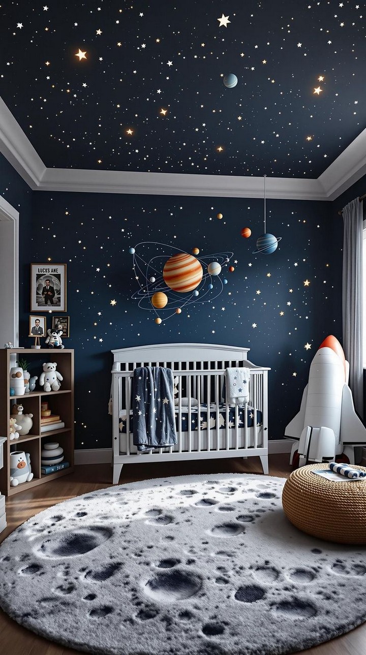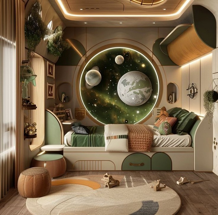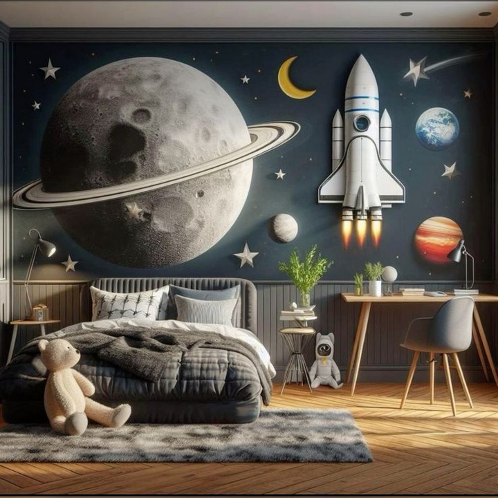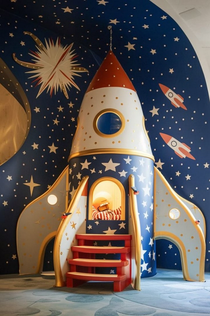 Amp up the celestial theme with LED light strips, fiber-optic star ceilings, and glowing moon lamps. Use deep purples and silvers for a futuristic look. It’s visually stunning and imaginative—ideal for night owls and dreamers.