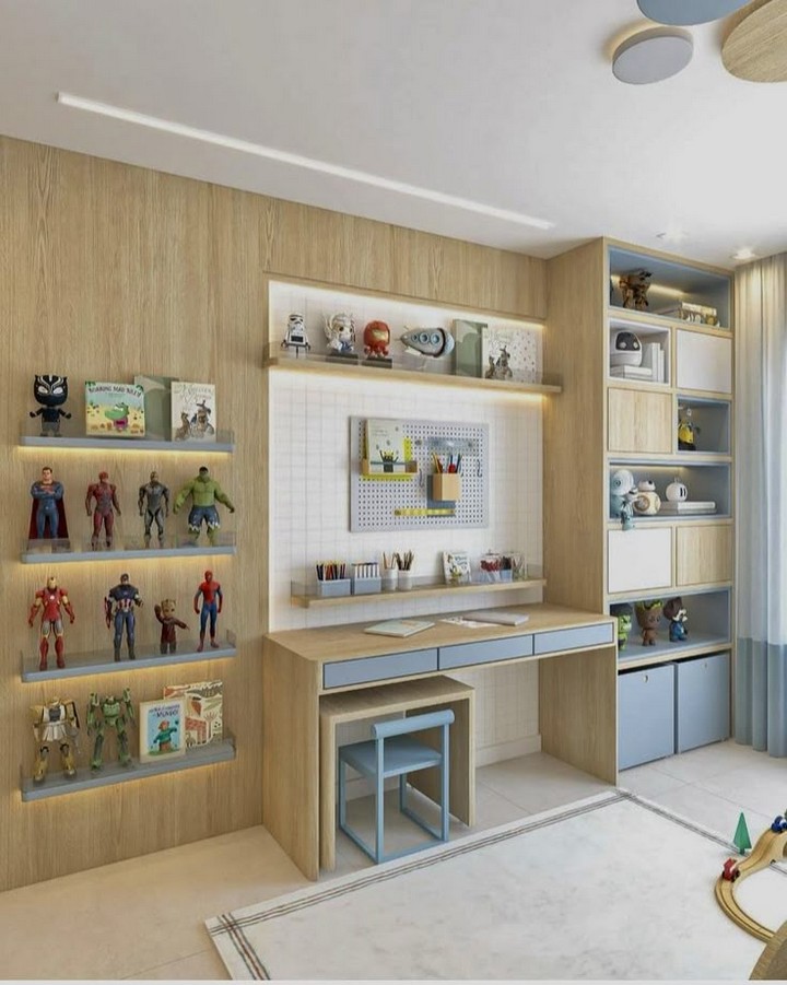 Whether it’s Marvel or DC, build a bold bedroom with comic-book wall art, character bedding, and superhero decals. A themed bed frame—like a Batmobile or Spiderman web can be the centerpiece. Ideal for fans who want to feel like a hero every day.