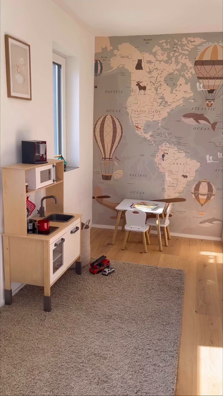 Create a space filled with maps, educational posters, magnetic walls, and tactile learning stations. Use color-coded bins and open shelving for accessible learning tools. It’s a functional and inspiring room for kids who love to explore and grow.