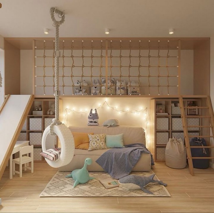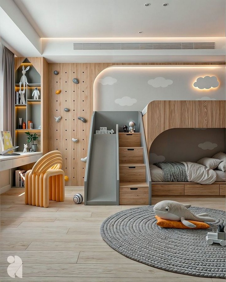 For active kids, add a mini indoor climbing wall. It encourages movement and doubles as a design feature. Pair it with a floor mat and a sporty theme for added flair.