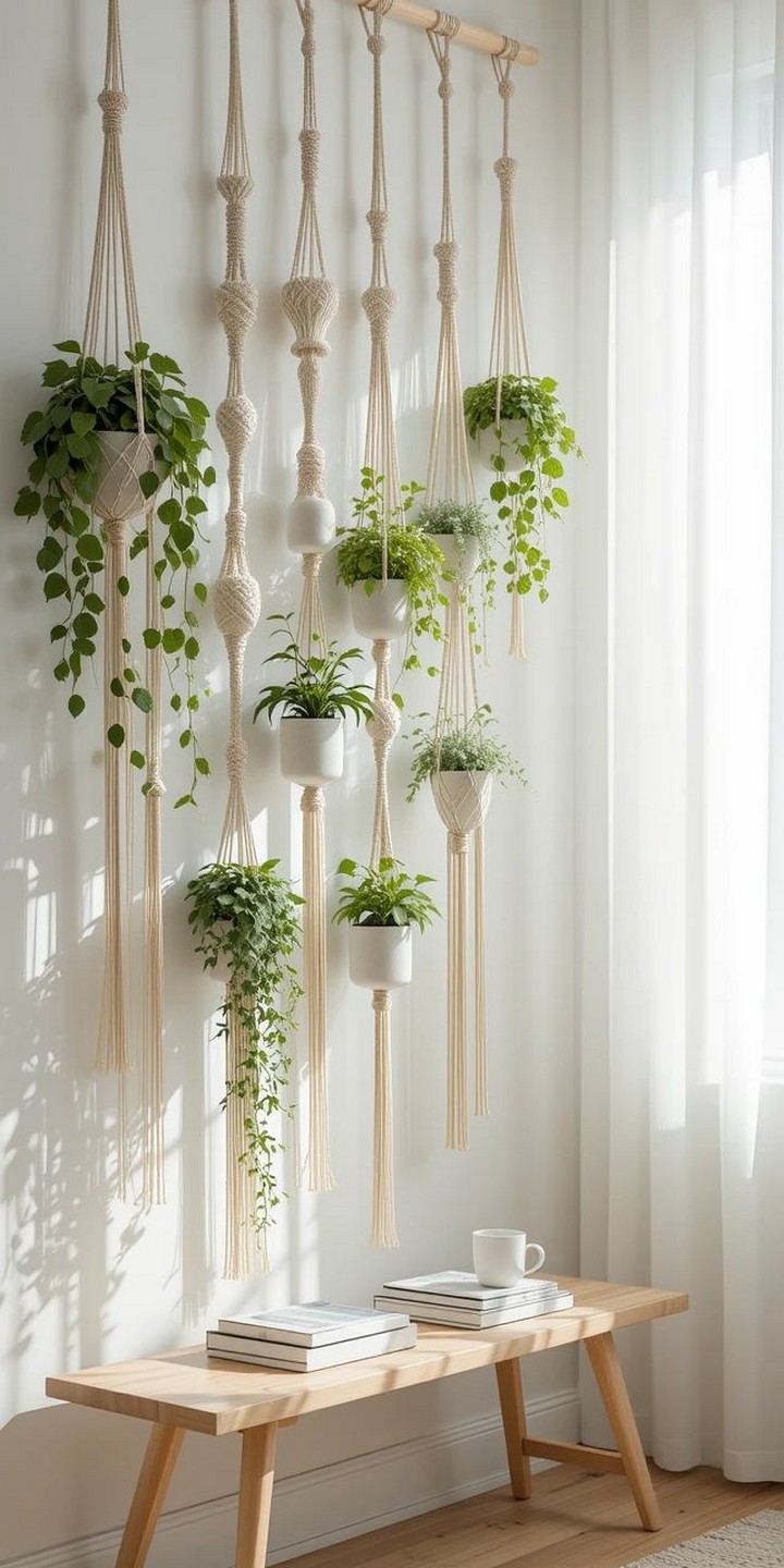 5. Minimalist Single-Strand Macramé: Clean, understated design featuring simple knots and thin cords. Ideal for modern interiors where plants should be the focal point rather than elaborate hangers.