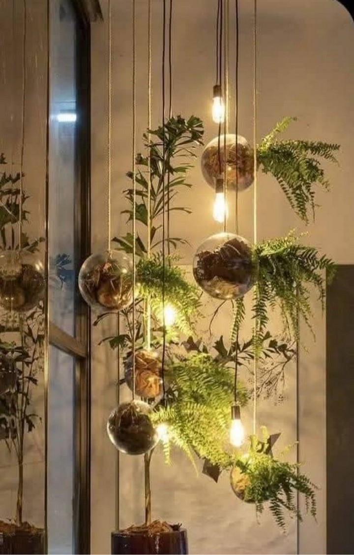 36. Bedside Hanging Plants: Replace traditional bedside lamps with illuminated hanging planters. These provide ambient lighting filtered through leaves for a calming, natural sleep environment.