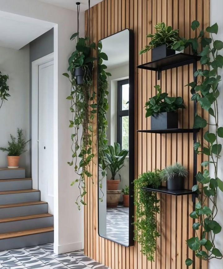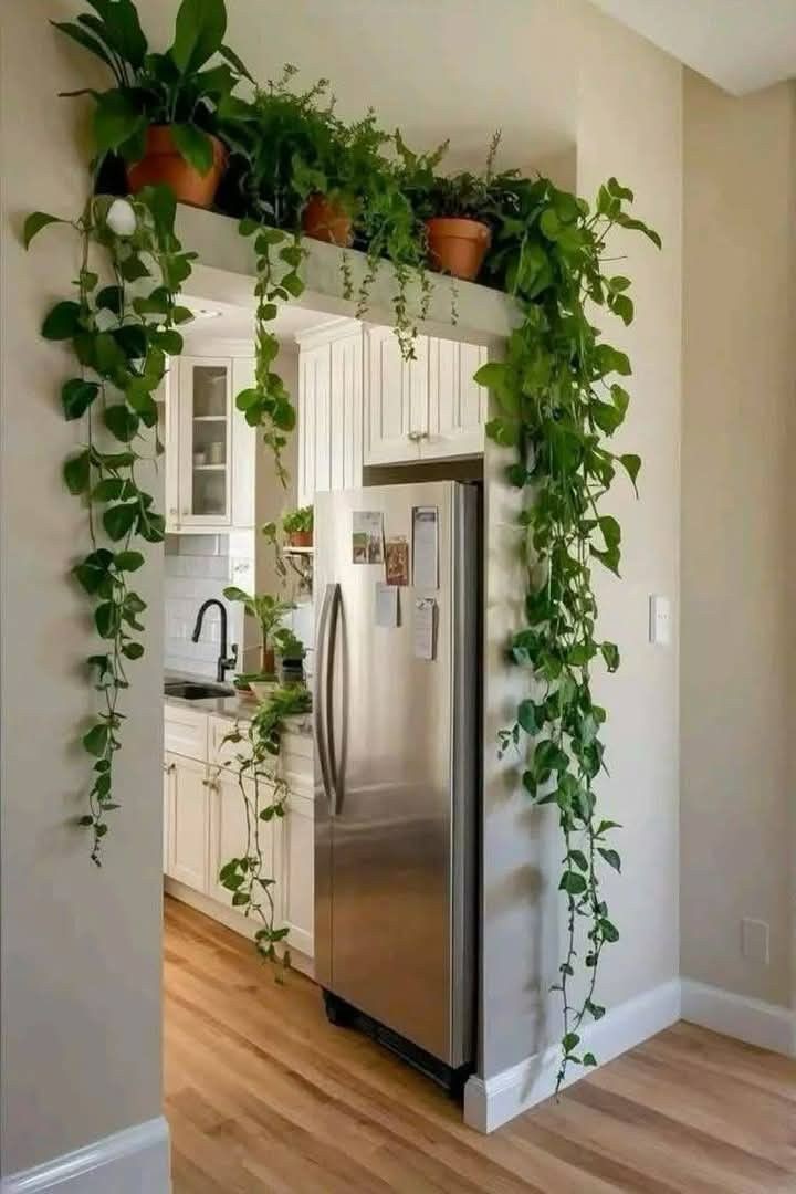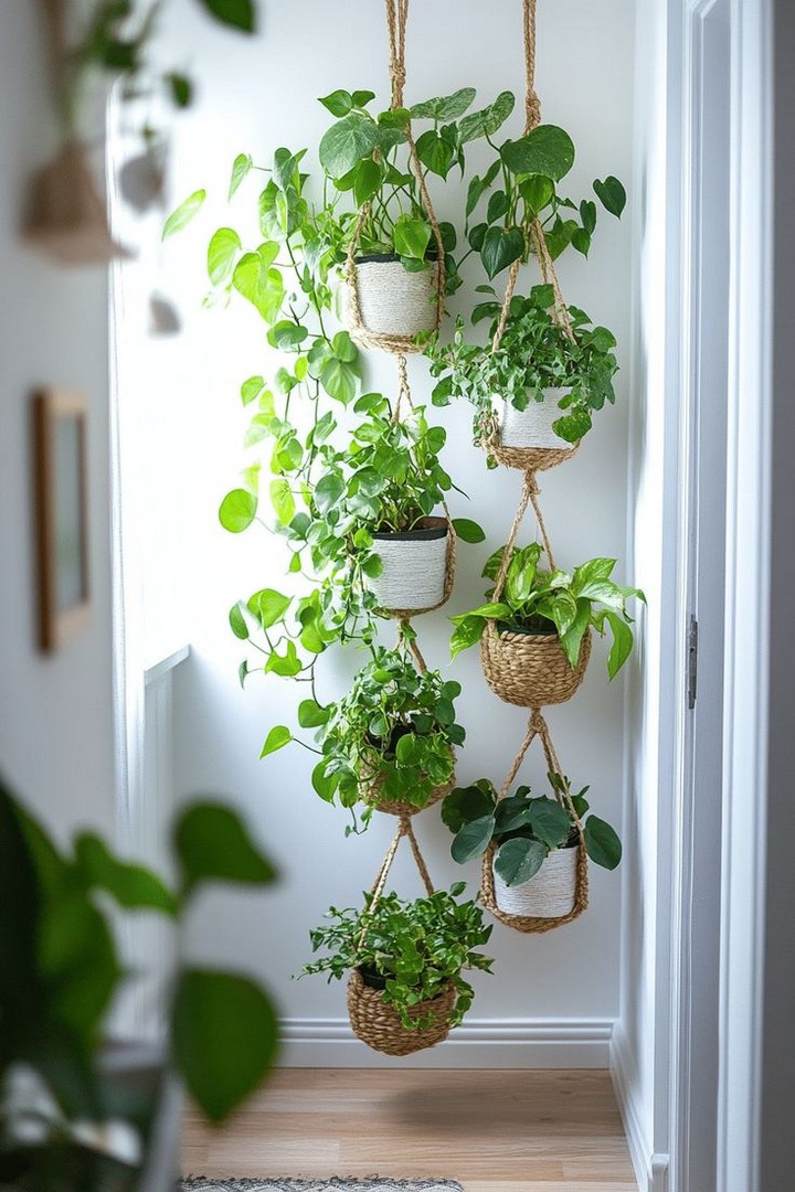 35. Behind-the-Door Plant Space: Utilizing often forgotten space with slim hanging planters. This clever placement activates dead zones without interfering with door function or flow.