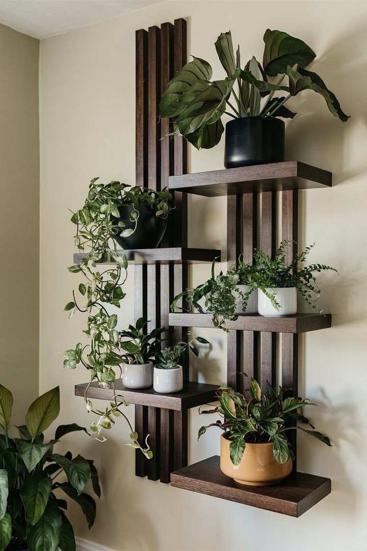 24. Open Shelf Trailing Plants: Pothos, ivy, or string-of-pearls positioned at shelf edges to create elegant green cascades. These plants soften storage areas while filling vertical wall space.