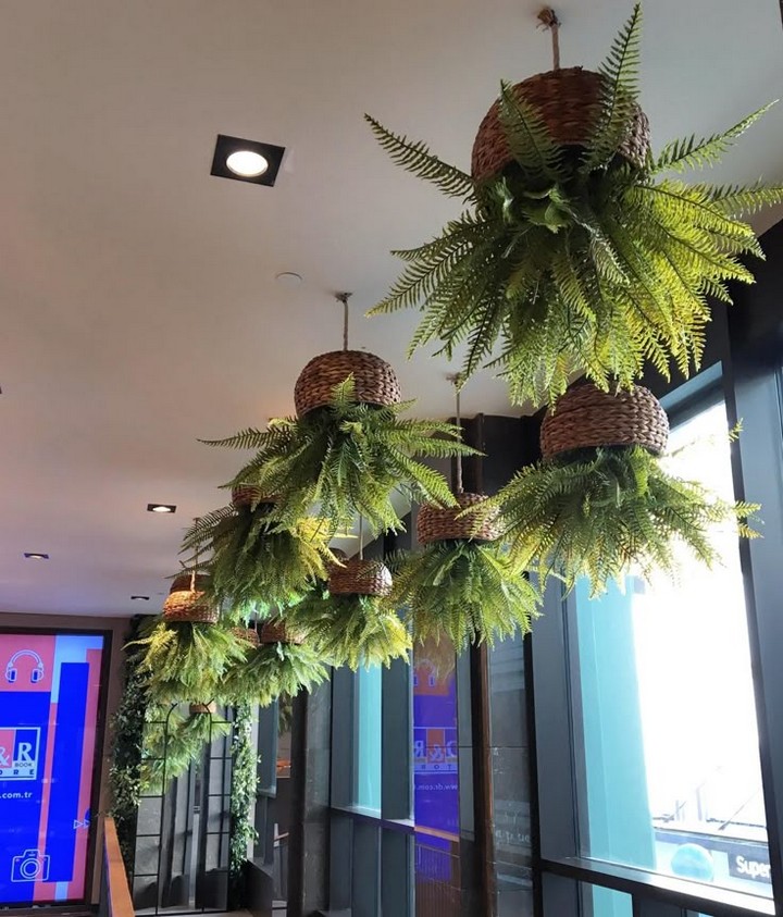 18. Ceiling Plant Grid: Network of suspended wire creating multiple hanging points. This customizable system allows for evolving displays and accommodates plants of varying weights throughout your space.