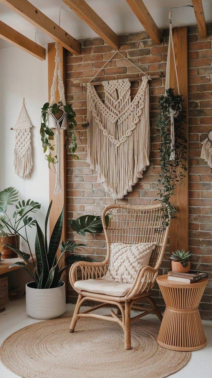 2. Colorful Macramé: Vibrant dyed cotton or synthetic cords create eye-catching displays. Choose complementary colors to your room’s palette or bold contrasting hues for dramatic effect.