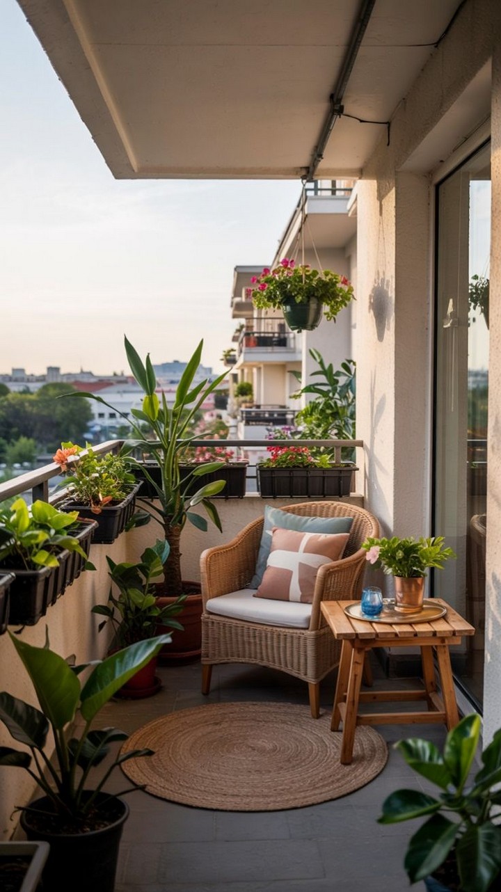 Maximize unused space with planters designed to hang over railings, creating a green perimeter without sacrificing floor area.