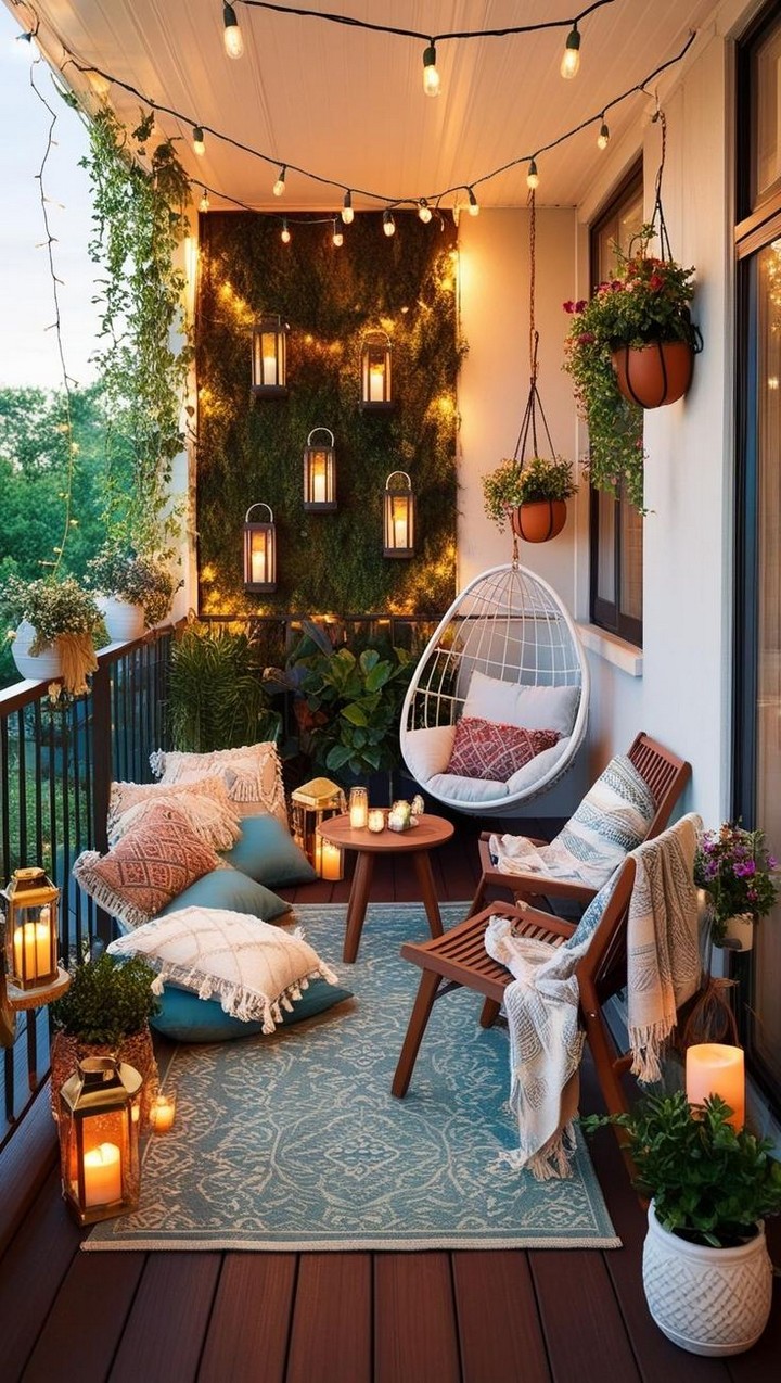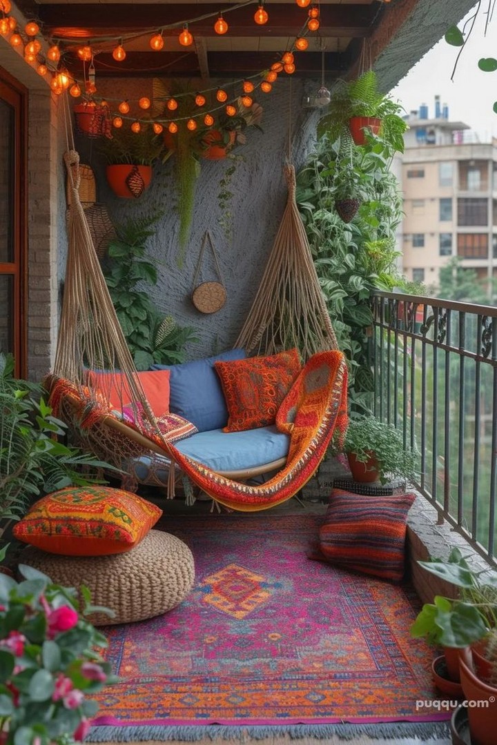 For balconies with appropriate attachment points, a compact hammock provides a space-efficient lounging solution that can be removed when not in use.