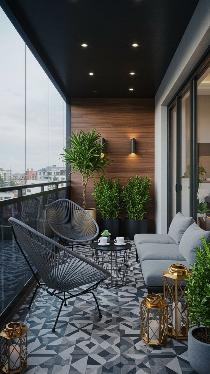 For concrete balconies, specialized outdoor floor paint can create custom patterns, solid colors, or even trompe l’oeil effects.