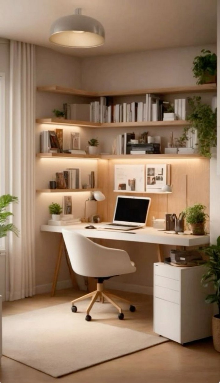 Natural light is a key element in any workspace, as it not only brightens the room but also enhances mood and productivity. Position your desk near a window to take advantage of natural light, and consider using sheer curtains or blinds that allow you to control the amount of light entering the room. If your home office lacks natural light, invest in good quality artificial lighting to mimic natural light and prevent eye strain.